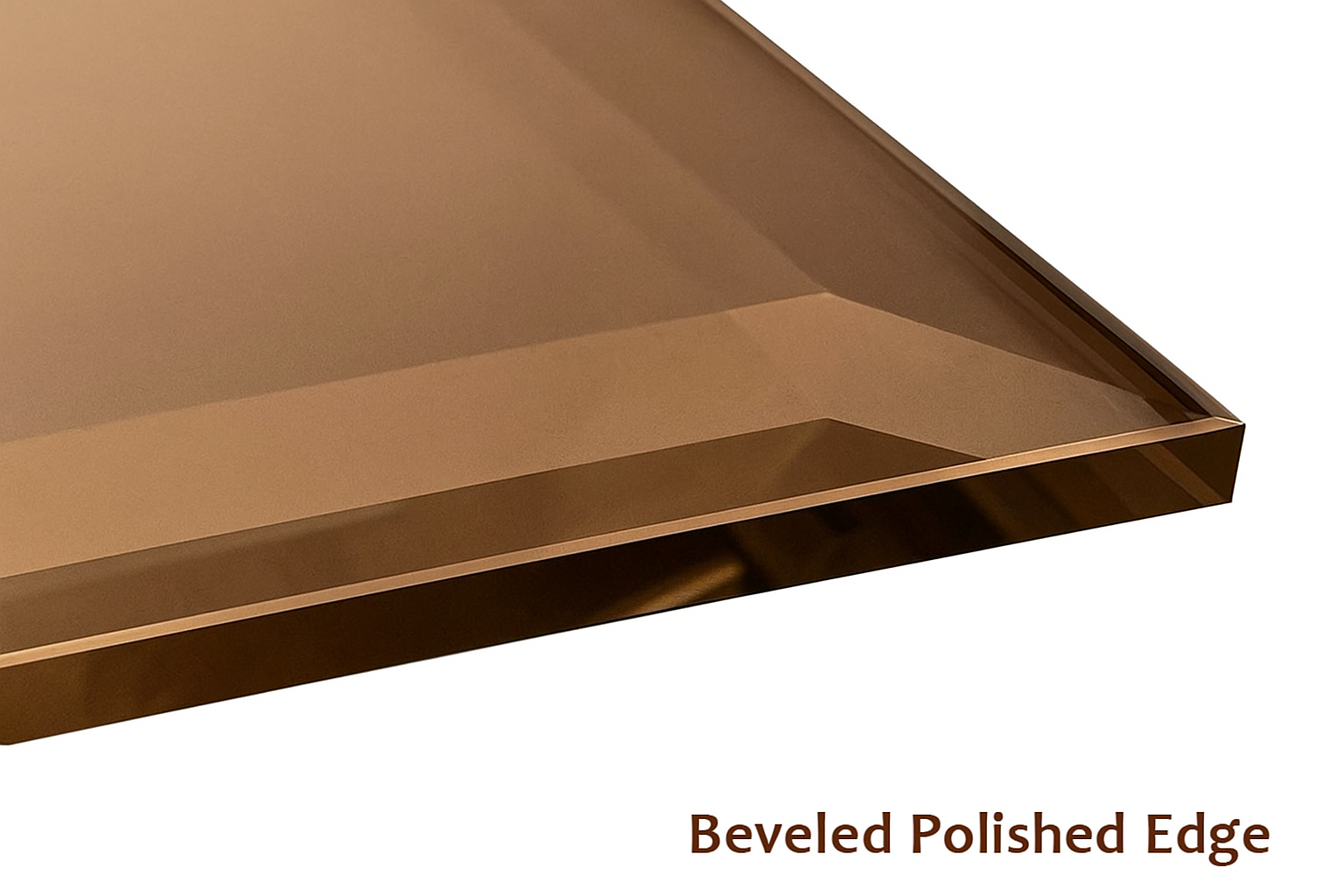 24 x 48 Inches (2x4 feet) rectangle 8 mm thickness Bronze Tinted Table top Glass is ideal for medium and small dining tables, centre table, desk tops. Bronze glass table tops are an excellent choice for luxurious furniture. Option to select Beveled Polished, Flat Polished edge types available for this rectangle glass.